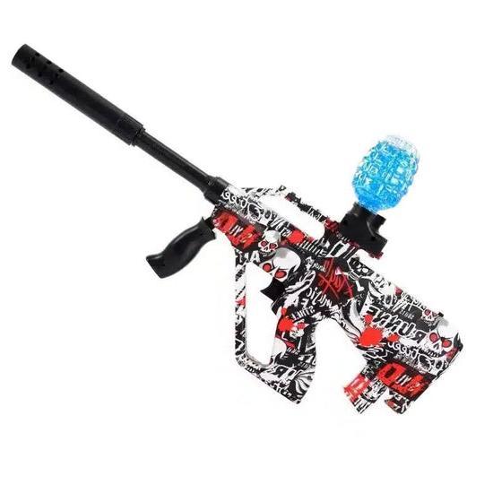Electric Mini AUG Splatter Ball Gun Orby Gun is your best choice for outdoor battles and gel gun games This Rifle Gel Blaster combines a high rate of fire a unique graffiti design and a convenient hopper feeding system to ensure that you can quickly reload and continue shooting bringing an exciting combat experience Whether you choose the Mini Red AUG Gun for its distinctive look or the Gel Blaster Rifle With Hopper Fed setup for uninterrupted volleys this rifle delivers every time