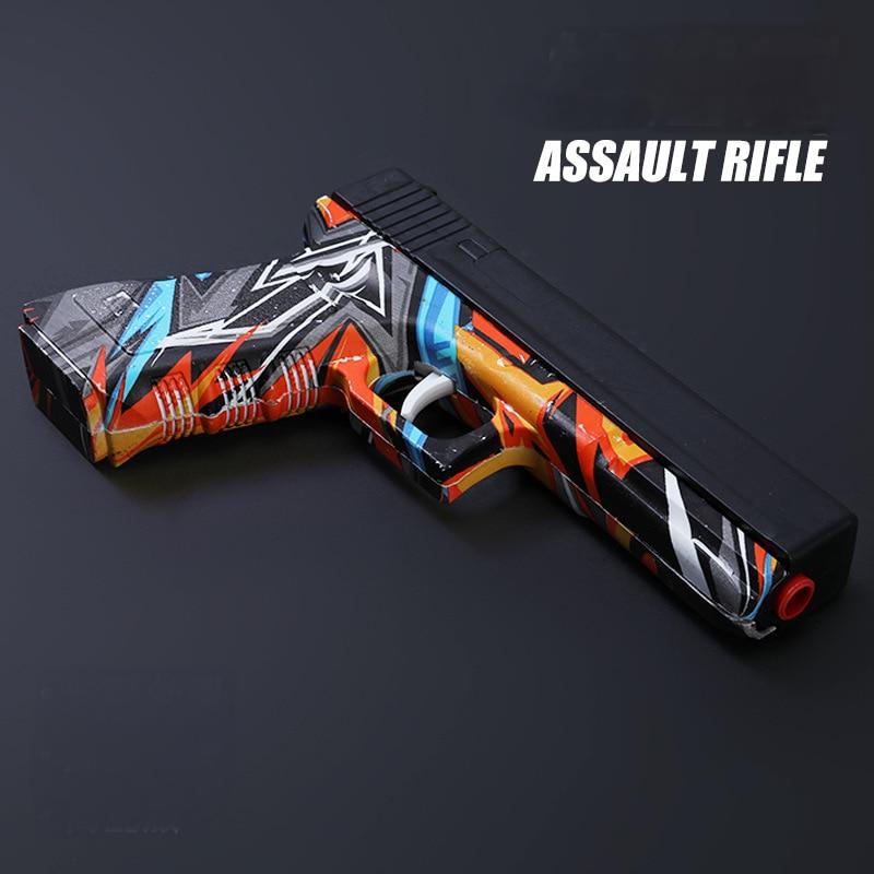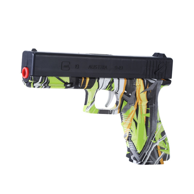 The New Graffiti Style Glock Pistol Gel Blaster is a toy gun that combines trendy design with high-performance shooting experience. Its unique graffiti style, portable and lightweight design, safe and environmentally friendly gel bullets and precise firing performance allow every player to find fun and a sense of accomplishment in the game. Whether it is competitive battle or leisure entertainment, this toy gun is an indispensable and excellent choice.