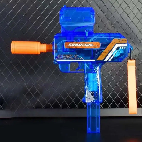 Unleash fast paced fun with the UZI Gun Hopper Fed With Light, a compact and futuristic SMG Orbeez Gun built for exciting night games. This fully automatic gel blaster features dynamic lighting effects that activate with every shot, enhancing visual immersion and turning you into the center of attention on the battlefield. Whether you're lighting up a backyard battle or engaging in a group skirmish, the UZI Gun is a perfect blend of performance, portability, and style.